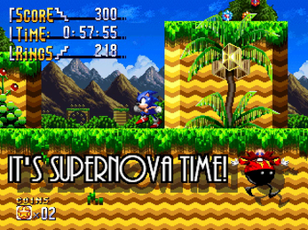 A modification of Sonic Hoshi that aims to organically bring the formula of Pizza Tower/Antonblast to the base game. To get a good rank you must activate the "Supernova" phase as fast as you can while collecting rings for a bonus.